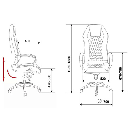 - Подлокотники: металлические (полированный алюминий) с накладками из натуральной кожи.