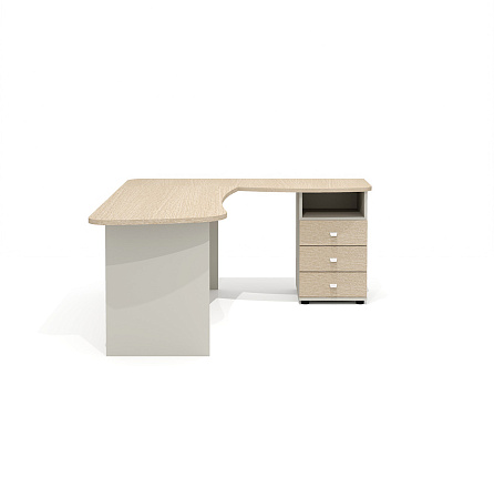 - G-118R + G-118.1R + G-27 Составной эргономичный стол правый Gamma дуб выбеленный N/беж
