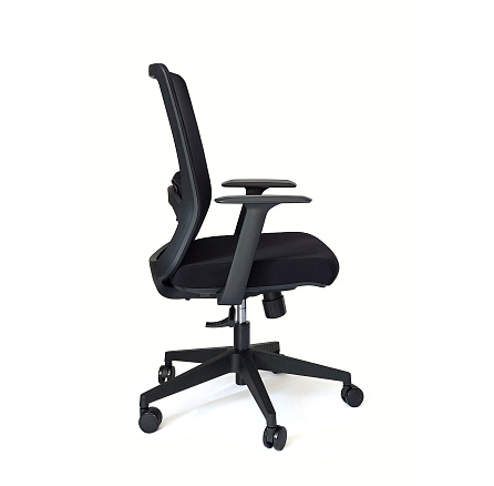 Кресло для сотрудников HY-808B — стильное кресло с комбинированной обивкой из ткани и сетчатой ткани. Спинка регулируется по высоте поясничным упором. Низ кресла (в районе механизма) закрыт пластиком.