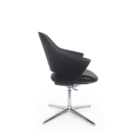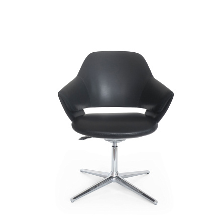 Кресло для посетителей KH-Star-X — эргономичная модель с привлекающим внимание дизайном сиденья, изящной четырехлучевой опорой и удобными подлокотниками.