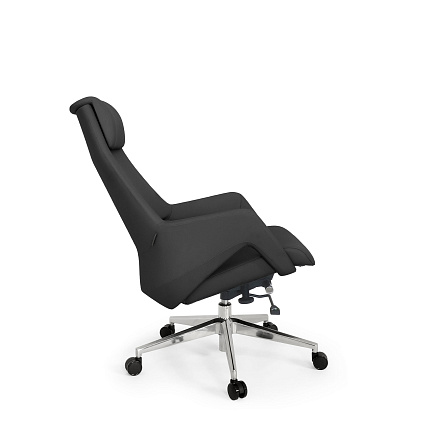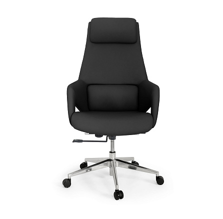 Кресло для руководителя LF0-PY07 — эргономичное кресло с обивкой из экокожи, алюминиевой крестовиной и прорезиненными роликами.
