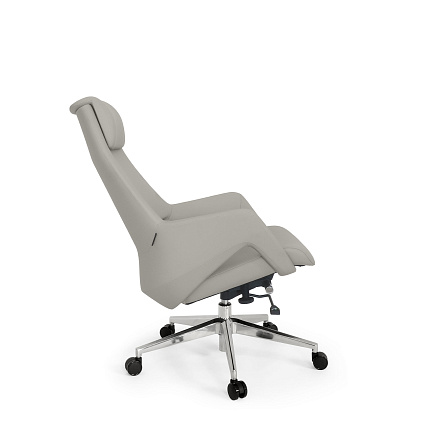 Кресло для руководителя LF0-PY07 — эргономичное кресло с комбинированной обивкой из кожи и экокожи, алюминиевой крестовиной и нерегулируемым поясничным упором.
