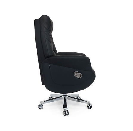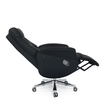 Кресло для руководителя LF0-PY939 — функциональное кресло с комбинированной обивкой из кожи и экокожи, металлической крестовиной, выдвижной подставкой для ног и механизмом «реклайнер», который позволяет раскладывать кресло полностью.