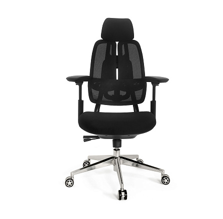 Кресло для руководителя LF0-WY37 — многофункциональное кресло с комбинированной обивкой из ткани и сетки, металлической крестовиной и регулируемыми подлокотниками и подголовником.