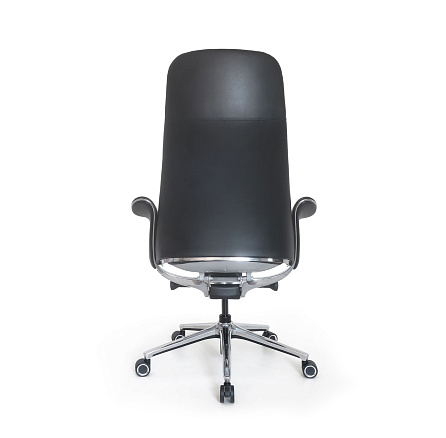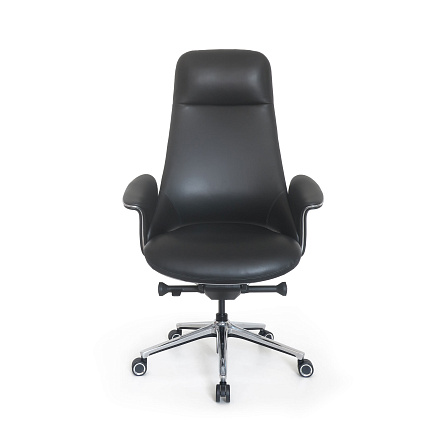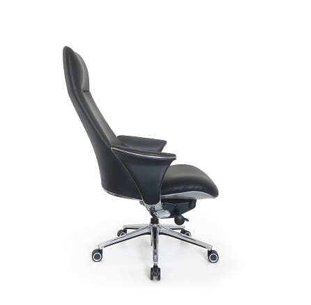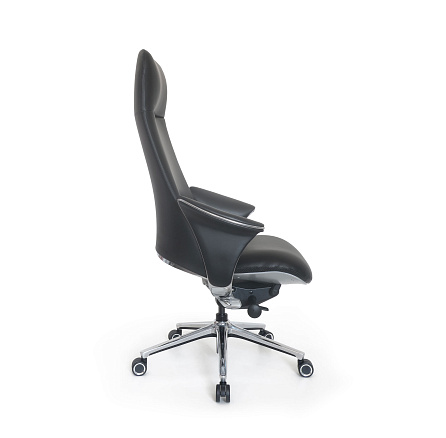 Обивка: лицевая часть — кожа, задняя часть — экокожа. Асинхронное отклонение спинки и сиденья. Подлокотники из полированного алюминия с мягкими накладками из кожи объединены со спинкой. Крестовина: верх — полированный алюминий, низ — черный пластик. Низ сиденья в районе механизма закрыт пластиком серебристого цвета. Удобная трехступенчатая регулировка жесткости качания при помощи поворотного рычага. Ролики увеличенного диаметра (60 мм)