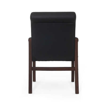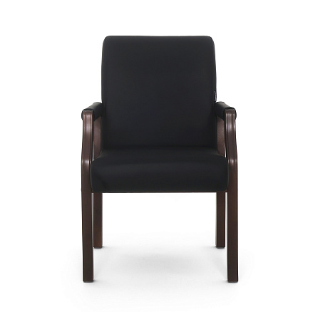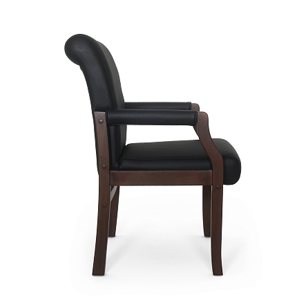 Стул для посетителей MB-484 — комфортный стул с комбинированной обивкой из натуральной кожи и экокожи и каркасом из массива дерева цвета «орех». Деревянные подлокотники с мягкими накладками из экокожи. Пластиковые подпятники в основании опор.