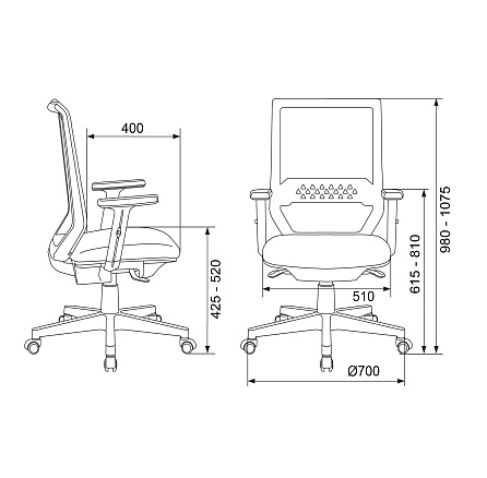 - Высота кресла: 98–107,5 см.
