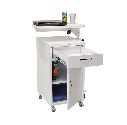Тумба медицинская МД ТП-9 предназначена для хранения личных вещей пациентов, медикаментов в больничной палате или домашних условиях. Тумба комплектуется прикроватным поворотным столиком, который помогает больному с постельным режимом принимать пищу, читать, разместить ноутбук для работы.