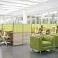 • Перегородки выполнены из алюминиевого каркаса и заполнения из ЛДСП, матового акрила или панелей с тканевой обивкой. В зависимости от стиля офисного помещения и специфики работы сотрудников предусмотрены четыре варианта наполнения перегородок: однородное или комбинированное из ЛДСП, комбинированное из ЛДСП и матового молочного акрила и комбинированное из ЛДСП и мягких текстильных панелей.
