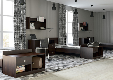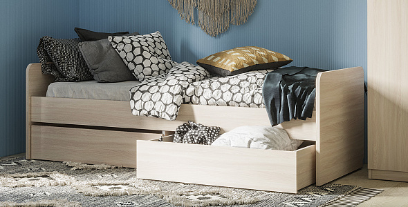 - Все стационарные изделия устанавливаются на опоры-подпятники, выдвижные ящики тахты — на колесные опоры.