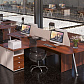 • «орех Артемид / беж» — столы, приставки, топы тумб, фасады и объединяющий стеллаж G-130 выполняются в цвете «орех Артемид», остальные элементы — в цвете «беж»;