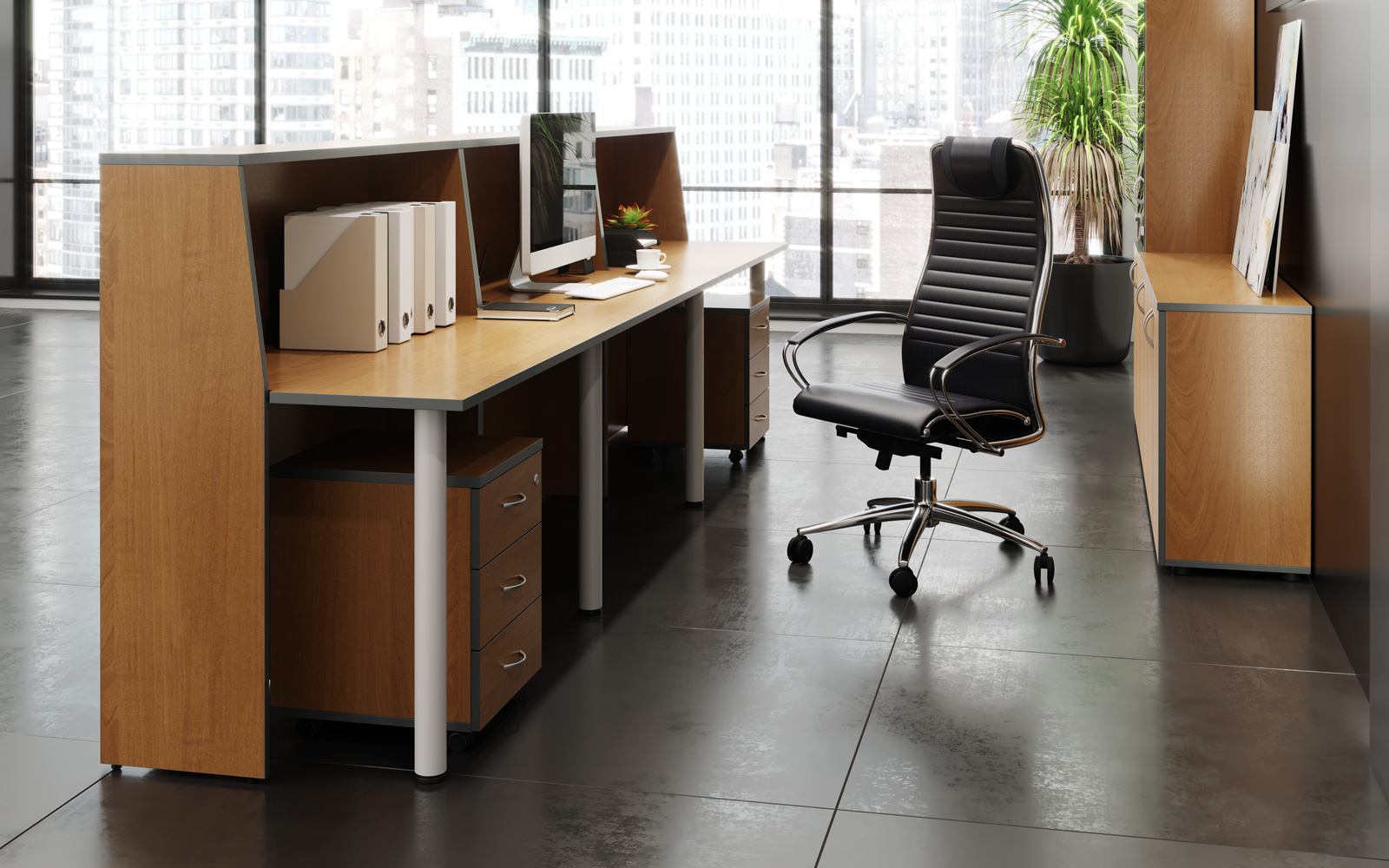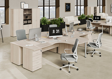 Мебель для персонала «Агат» — это идеальное соотношение функциональности и внешнего вида, цены и качества. Коллекция выполнена в традиционном офисном стиле, а актуальный внешний вид ей придают современные материалы и популярные цветовые решения. Широкий модельный ряд позволяет оборудовать рабочие места сотрудников и руководителей отделов, конференц-залы, переговорные комнаты и зоны ресепшен. Рабочее место комплектуется как конструктор, выбор основных и дополнительных элементов понятен и прост. И всё это — по оптимальной цене.