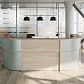 • Передние панели в угловых сегментах стойки администратора выполнены из HDF толщиной 3 мм, запрессованной в ПВХ-пленку цвета «серый металлик».