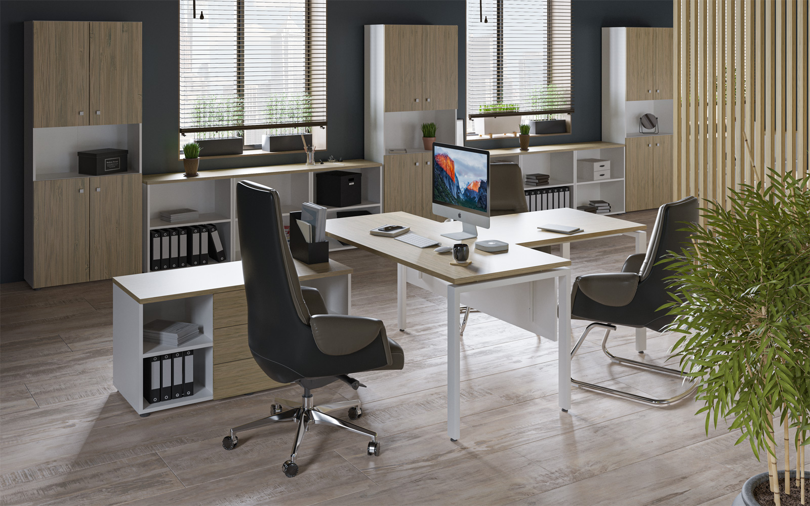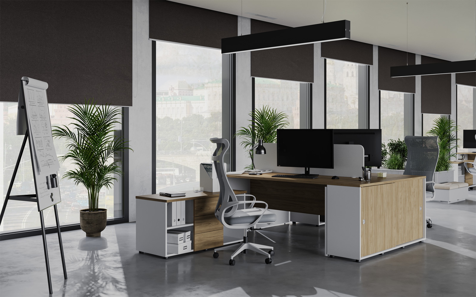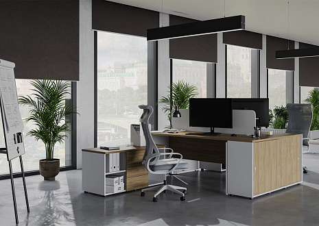 Современная мебель серии Rio Base идеально подойдет для оформления в едином стиле всего офиса. С помощью коллекции можно удобно обустроить кабинеты любой площади. Разные цветовые решения и большой модельный ряд позволяют зонировать помещения и учитывать специфику работы сотрудников разных отделов. Кроме того, элементы сочетаются с товарами из других серий линейки «Rio — Комплексный офис», что дает еще больше возможностей.