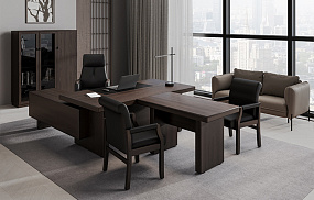 28101 Стол руководителя с кожаными вставками Kingston темный орех