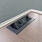 - Рабочий и переговорный столы оснащены врезанными в полость столешниц розеточными блоками с двумя силовыми гнездами, двумя USB-портами и модулем беспроводной зарядки.