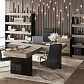 - Метод сборки составных столешниц — болтовое соединение. Крепление стеклянных панелей к корпусам греденции и стеллажей осуществляется с использованием винтового крепежа, дополненного декоративными хромированными элементами.