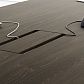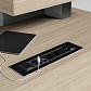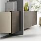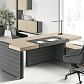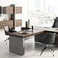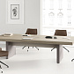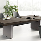 В модельном ряду представлены письменные столы с открытой и закрытой фронтальными панелями, брифинг-приставкой, боковой тумбой, подвесные шкафы и шкафы-тотемы, переговорные столы и кофейные столики с отделкой из меламина, 3D-плёнки и экокожи.