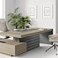 С помощью разных по массивности форм мебельных элементов и отделки с визуальным и тактильным эффектом натурального дерева и кожи создаются интересные решения для кабинета, которые придадут интерьеру роскошный внешний вид, подчеркнут солидность и успешность компании и, конечно же, брутальный стиль руководителя.