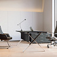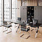 Кабинет руководителя Kvins Slim — это сочетание необычных форм, строгих линий и современных материалов. Основа коллекции — полированная до зеркального блеска сталь, глянцевое стекло и матовое нанотехнологичное покрытие, стойкое к образованию отпечатков пальцев и способное восстанавливаться от поверхностных царапин.