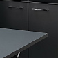 • HPL-пластик черного цвета в сочетании с корпусами тумб, фасадами шкафов, декоративными накладными топами и панелями, облицованными черной матовой ПВХ-пленкой;