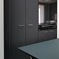 • Стеклянные фасады шкафов выполнены из непрозрачного черного Lacobel или тонированного серого стекла толщиной 4 мм. Каждый фасад состоит из стеклянного полотна, обрамленного черной алюминиевой рамой.