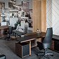 Конструкция элементов доведена до скульптурной четкости. Дизайн функционально обоснован и лаконичен. Прямые линии, массивные формы и интересные детали привнесут эстетику и значительность в интерьер вашего офиса.Столешницы: