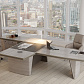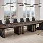 - Столы руководителя снабжены бюваром, конференц-столы — вставками, обтянутыми экокожей.