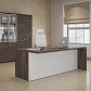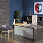 Terra — кабинет со стильным и выразительным дизайном. Скульптурные линии, теплые цвета в сочетании с натуральным рисунком дерева придают офису современный вид, яркие детали кабинета подчеркивают динамичный характер. В основе дизайнерского решения создание максимального комфорта пространства и функциональности офиса.