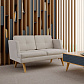 - Каждое изделие установлено на две «А»-образные поперечные опоры высотой 255 мм. Опоры выполнены из массива ясеня и покрыты прозрачным лаком. Длина каждой опоры — 700 мм. В верхней части опоры предусмотрена крепёжная пластина, которая имеет не менее шести точек крепления к основанию изделия. К каркасам диванов опоры крепятся саморезами.