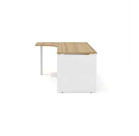 - R-2.2L + ЮЗ-737 Эргономичный стол левый с опорой Rio Base швейцарский вяз/белый