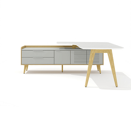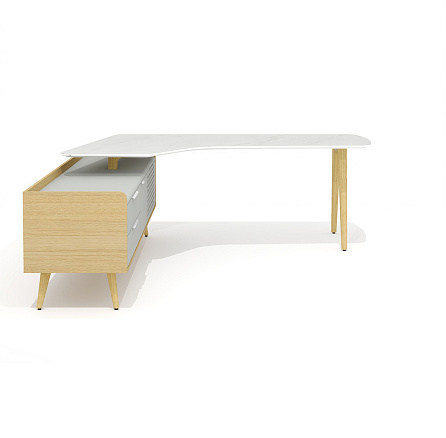 Rem-209.1L + Rem-34L Стол руководителя эргономичный с опорной тумбой Remo мрамор белый / серый софт