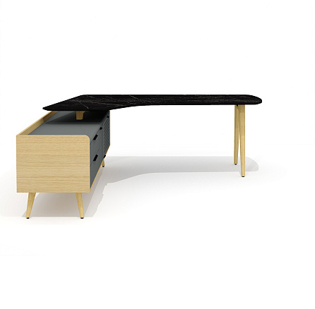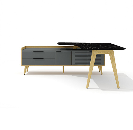 Rem-209.1L + Rem-34L Стол руководителя эргономичный с опорной тумбой Remo мрамор черный / графит