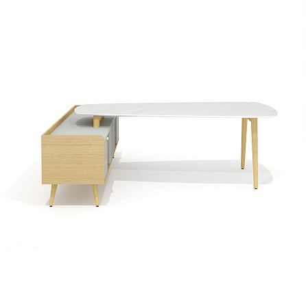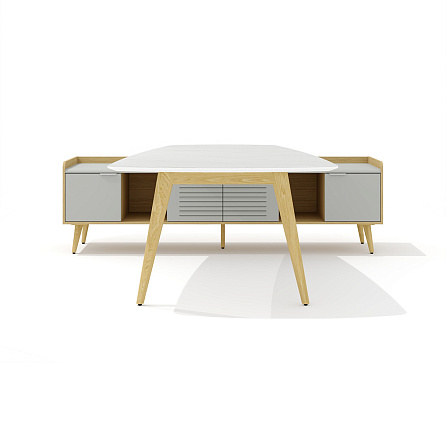 Rem-210.1 + Rem-35 Стол для переговоров с опорной тумбой Remo мрамор белый / серый софт