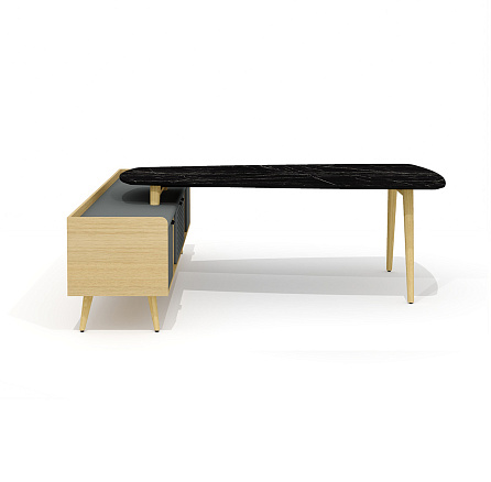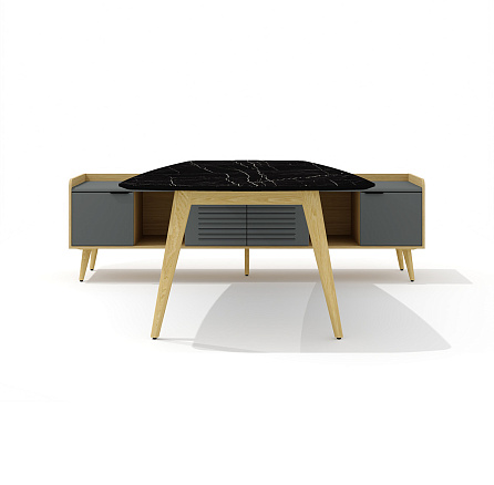 Rem-210.1 + Rem-35 Стол для переговоров с опорной тумбой Remo мрамор черный / графит