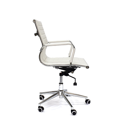 Хромированные металлические подлокотники со съемными накладками из экокожи. Прорезиненные ролики
