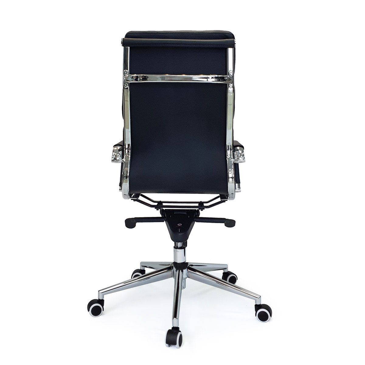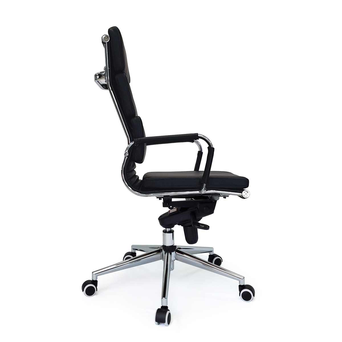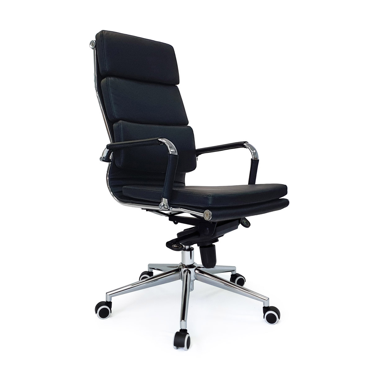 Кресло руководителя RT-08A — кресло с обивкой из экокожи, мягкими прямоугольными накладками на спинке и сиденье. Хромированные подлокотники снабжены накладками из экокожи. Регулировка высоты и наклона.