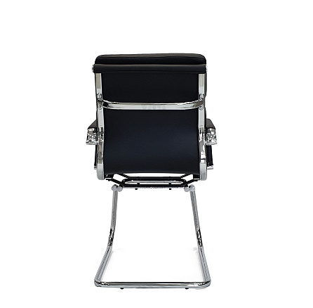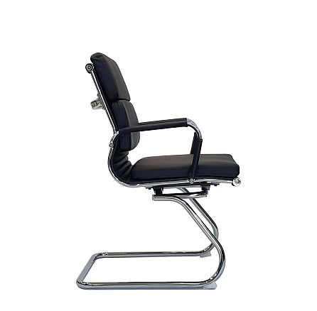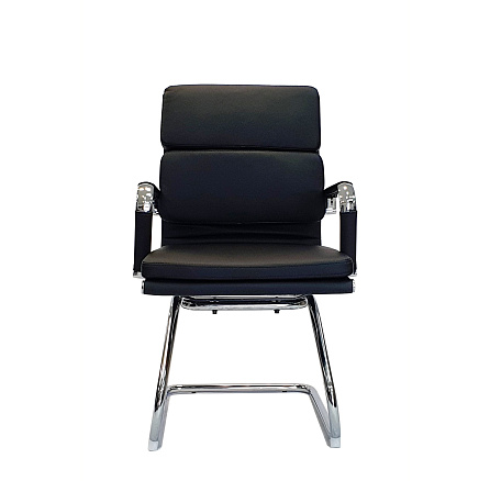 Кресло для посетителей RT-08BS — кресло на полозьях, с обивкой из экокожи и мягкими прямоугольными накладками на спинке и сиденье. Хромированные подлокотники снабжены накладками из экокожи.