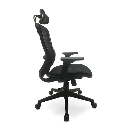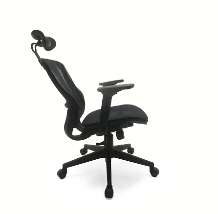 Кресло для персонала RT-2072-1 — функциональное кресло из сетчатой ткани с регулируемым по высоте поясничным упором, регулируемым по высоте и наклону подголовником и регулируемыми подлокотниками.