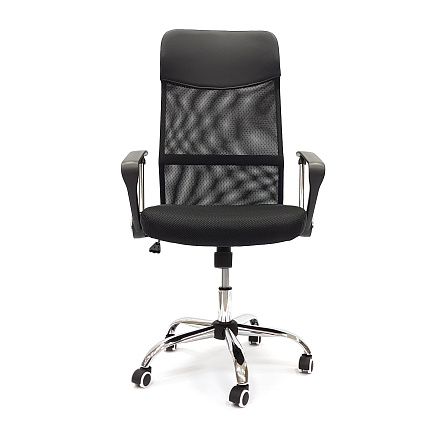 Кресло для руководителя RT-530 — кресло с обивкой из сетчатой ткани и комбинированными подлокотниками из хромированного металла и пластика. Регулировка высоты и наклона.