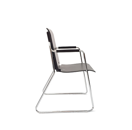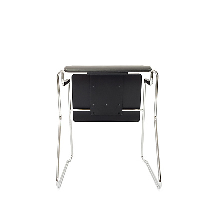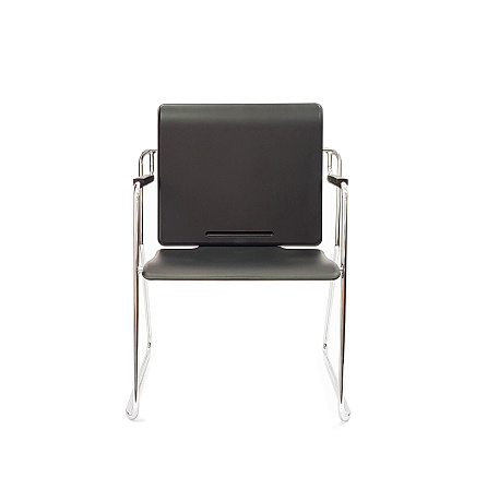 Главная особенность этой модели — трансформирующий механизм. Он позволяет легко и быстро превратить кресло в небольшой столик стандартной высоты 75 см. Из двух кресел-трансформеров можно образовать компактное рабочее место. Это удобное решение для мероприятий в коворкингах или конференц-залах, где необходимо записывать тезисы выступающего.