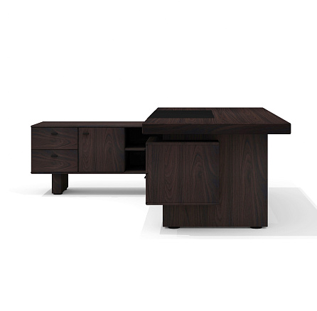 • Цвет экокожи/ткани: черная экокожа (бювар), тёмно-серая ткань (обивка днища выдвижных ящиков).