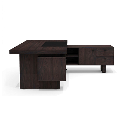 • Цвет экокожи/ткани: черная экокожа (бювар), тёмно-серая ткань (обивка днища выдвижных ящиков).