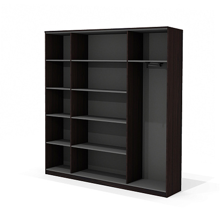 - Наполнение: 3 отделения: 2 из них с 1 полками и 1 с полкой и выдвижной штангой для одежды.