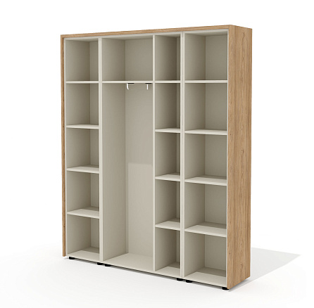• Наполнение: отделение для одежды с полкой, выдвижной штангой и 4 полками, и 2 отделения с 4 полками (5-ю нишами).