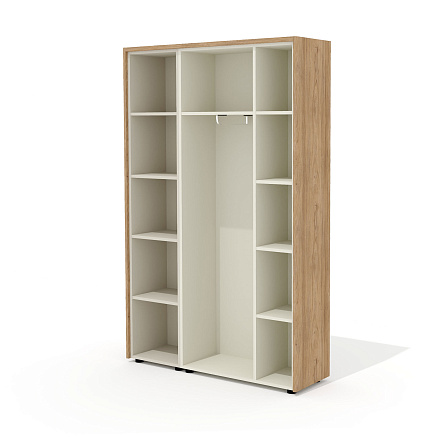 - Наполнение: отделение для одежды с полкой, выдвижной штангой и 4 полками, и отделение с 4 полками (5-ю нишами).