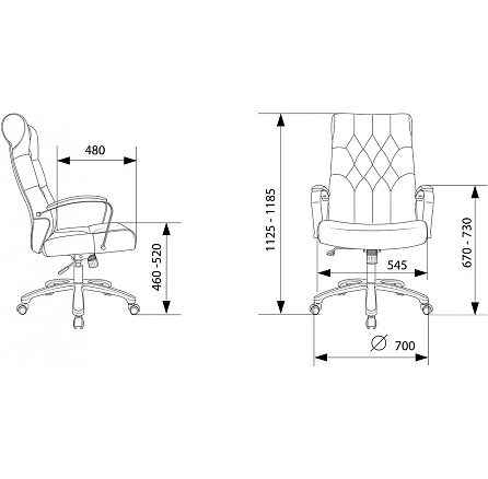 - Высота кресла: 112,5–118,5 см.