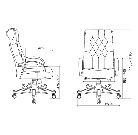 - Высота кресла: 113,5–119,5 см.