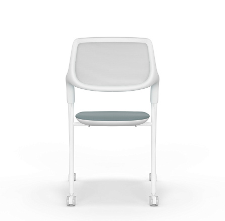 Кресло для посетителей VELA.A – стильное легкое кресло со спинкой из сетчатой ткани и мягким сиденьем с тканевой обивкой. Каркас выполнен из металлической трубы диаметром 25 мм. Модель снабжена прорезиненными роликами, его можно легко перемещать по кабинету. Подлокотники необычной формы объединены со спинкой и сиденьем.
