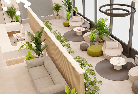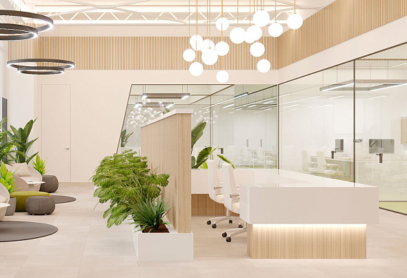 Рабочие места для сотрудников оборудовали станциями «Rio Project», а для кабинетов руководителей за основу взяли коллекцию «Rio Direct». Комнаты отдыха, переговорные и ресепшен дополнили мягкой мебелью.